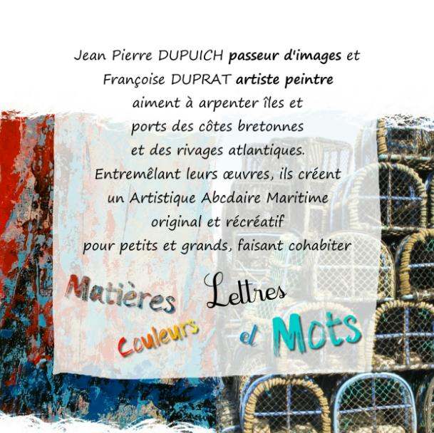 « On prépare activement le salon Les Couleurs à la page qui aura lieu à Saint-Goustan, le 11 septembre », annonce-t-il.Maritime, Abécédaire artistique de Françoise Duprat et Jean-Pierre Dupuich, pour enfants et adultes.
